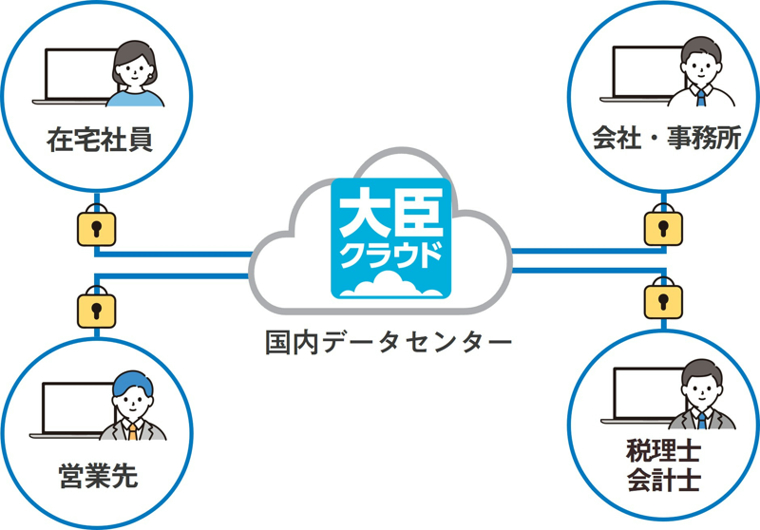 インターネット環境があれば、どこからでも大臣NXクラウドにアクセス可能です。