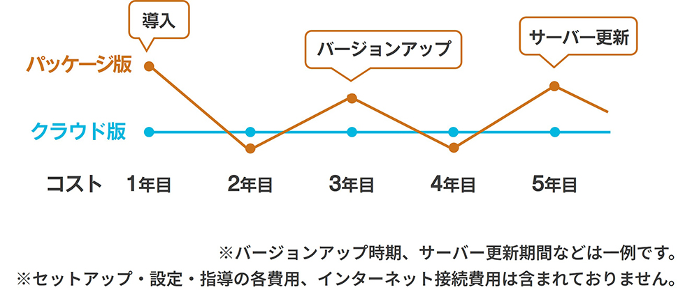 法改正対応やバージョンアップの費用も追加で発生しないため、年間予算が立てやすくなります。 -